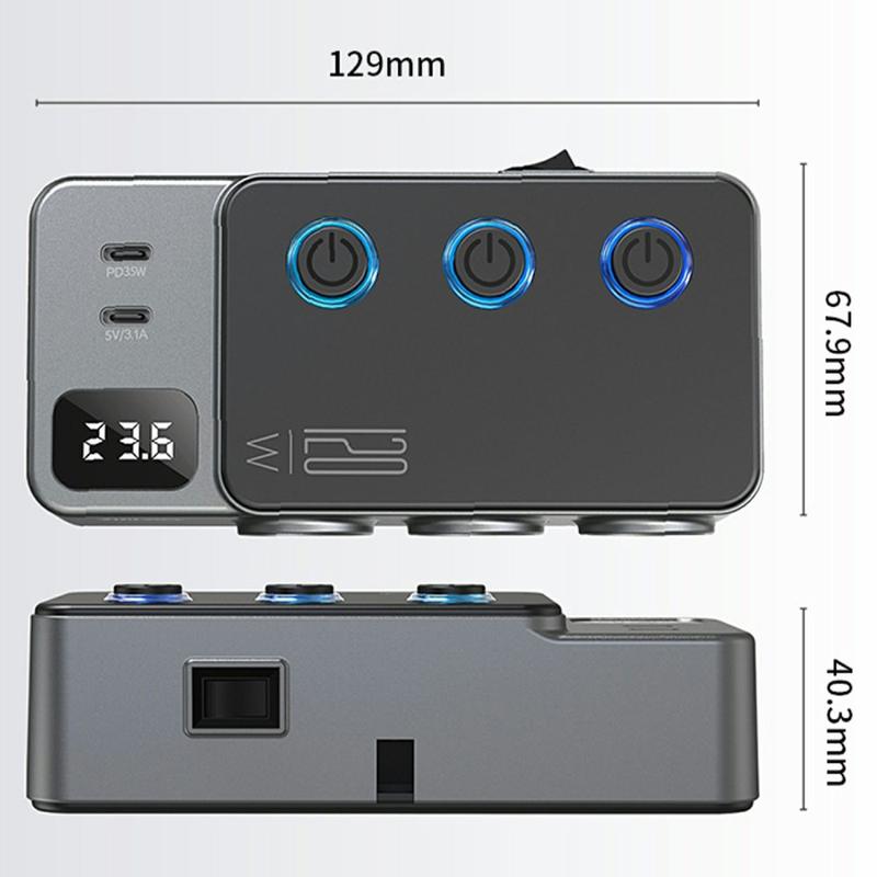 - 7 Charging Ports in Total - Includes 3 cigarette lighter sockets, 3 USB-A ports, 1 USB-C, and 1 PD fast charging port