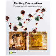 These fairy lights blend natural decorative elements with warm LED illumination to create a timeless seasonal look. The real pine cones and festive berries add texture and authenticity, while the timer ensures effortless daily operation. Battery power gives you complete freedom in placement, and the silver wire can be shaped around any décor style. With low energy consumption and long lifetime, this is a durable decorative lighting solution you can reuse every year.