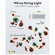 • 20-LED Silver Wire Fairy Lights “Pine Cones & Red Berries” with Timer, Warm White 3000 K, Battery-Operated (Indoor, IP20)