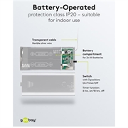 - Battery-operated (2× AA, not included) for placement anywhere indoors