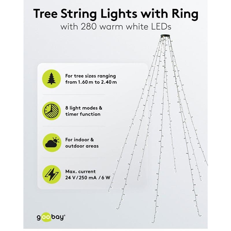 Goobay 280-LED Christmas Tree String Lights with Ring - 8x2m - Warm White