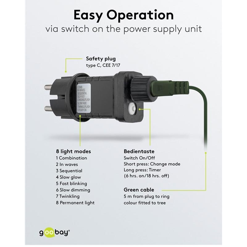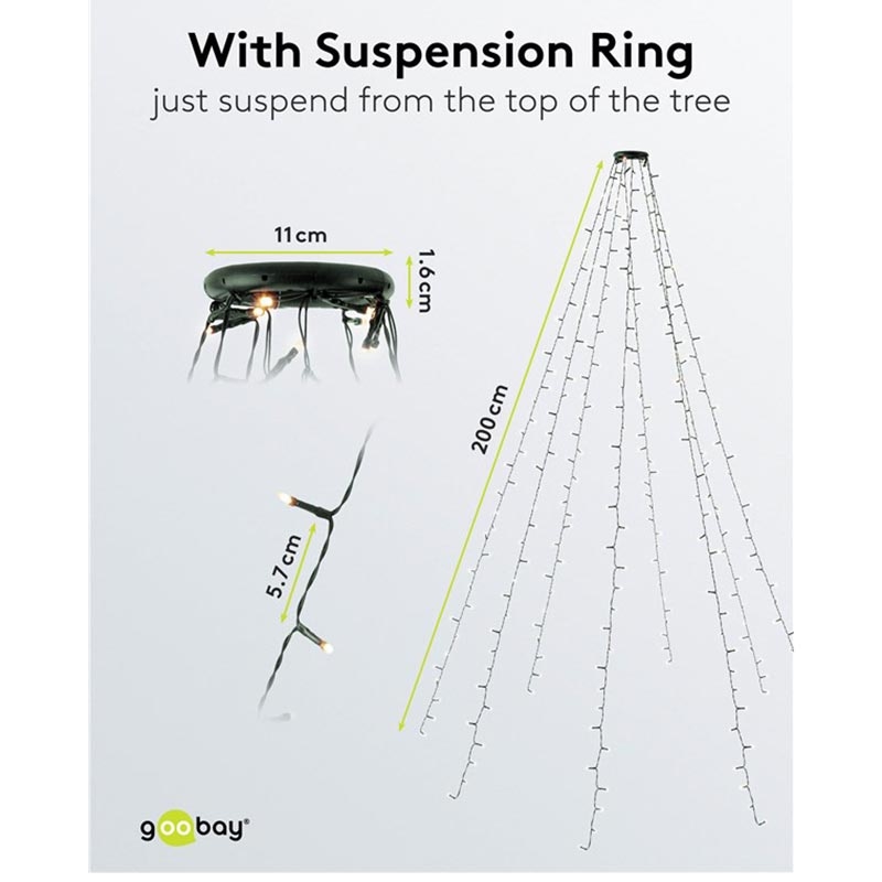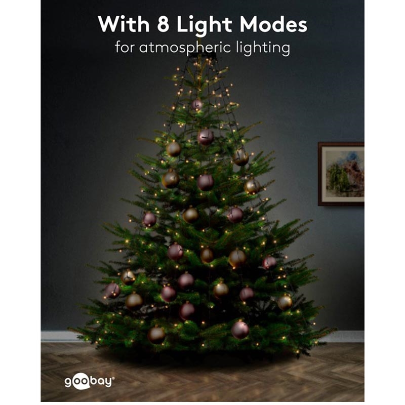 • Goobay 280-LED Tree String Lights with Hanging Ring - 8x2m, Timer, Memory, 8 Modes, Warm White 2500 K, Indoor/Outdoor (IP44)
