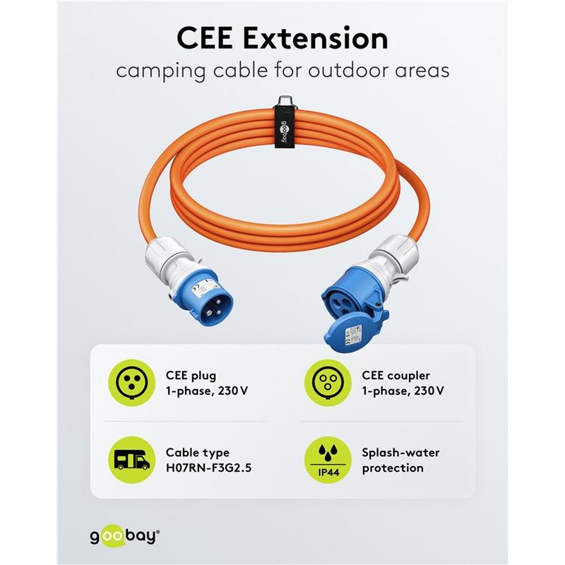 Goobay CEE Extension Camping Cable - CEE Plug to CEE Coupler - 5m, 16A, 3680W