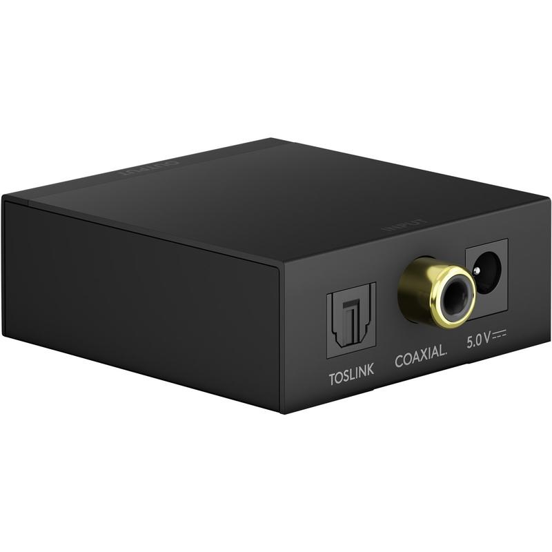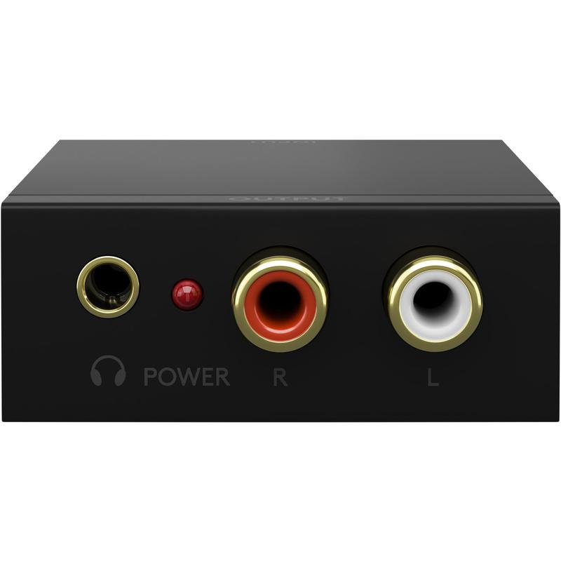 - Converts TOSLINK or coaxial S/PDIF audio to analogue left/right RCA or 3.5 mm stereo – no extra boxes needed.