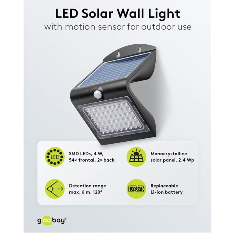 Goobay LED Solar Wall Light 4W with PIR Motion Sensor - IP65 Waterproof Outdoor Solar Lamp (500 lm, 4000K) - Replaceable Battery