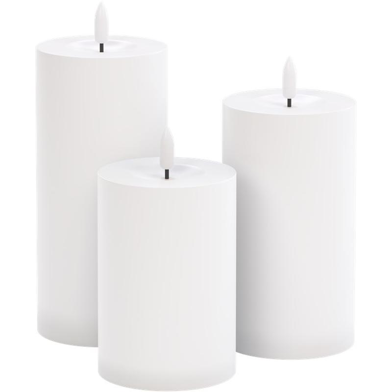 - Set of 3 flameless LED candles for indoor and outdoor use (IP44)
