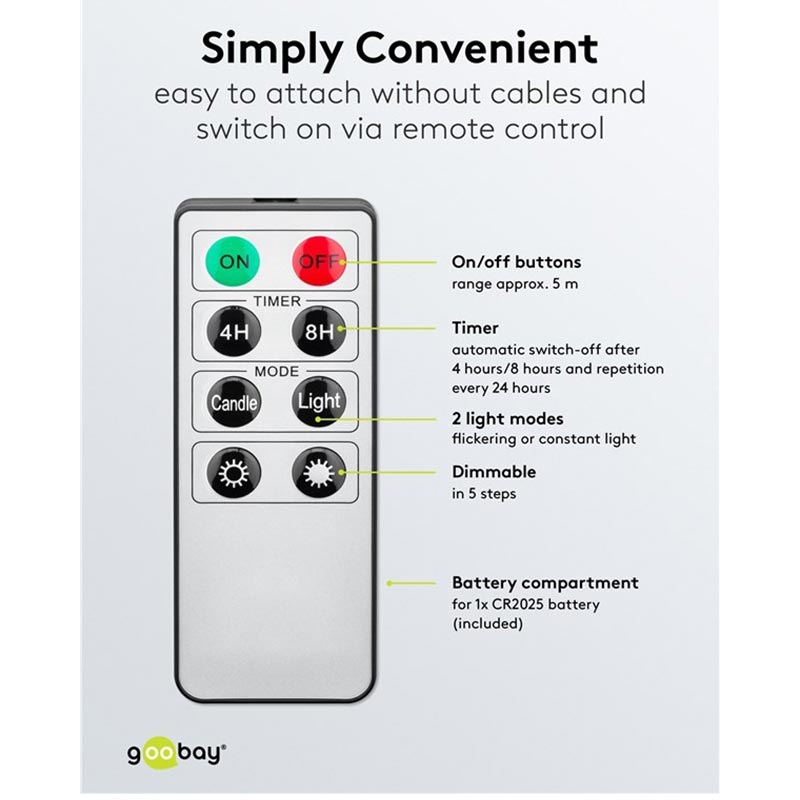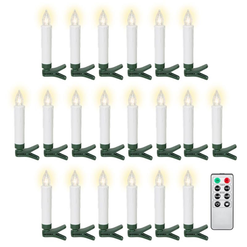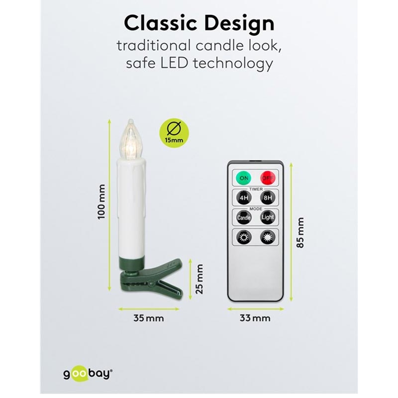 Goobay Wireless LED Christmas Tree Candle Set - 20 Dimmable Candles with Clips, Remote Control & Timer (2600 K)
