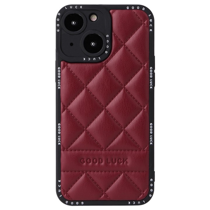 For iPhone 14 Precise Cutouts Phone Case PU Leather + PC + TPU Protective Back Cover Rhombic Grid Texture Phone Shell