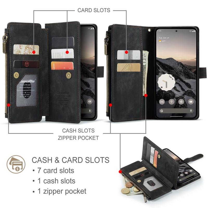 The Caseme C30 multifunctional wallet case for Google Pixel 10, Pixel 10 Pro brings exceptional all-around protection and an exclusive, refined design. This elegant case is made of premium polyurethane, reinforced with a shock-resistant TPU inner cover that snuggles your Google Pixel 10, Pixel 10 Pro perfectly. Meanwhile, the Caseme C30 wallet case is enhanced with numerous card slots, one large money compartment inside, and one outside zipper pocket, all protected by a secure magnetic closure.