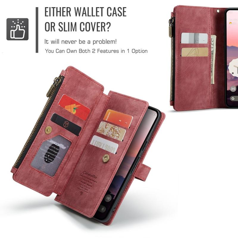 The Caseme C30 multifunctional wallet case for Google Pixel 10, Pixel 10 Pro brings exceptional all-around protection and an exclusive, refined design. This elegant case is made of premium polyurethane, reinforced with a shock-resistant TPU inner cover that snuggles your Google Pixel 10, Pixel 10 Pro perfectly. Meanwhile, the Caseme C30 wallet case is enhanced with numerous card slots, one large money compartment inside, and one outside zipper pocket, all protected by a secure magnetic closure.