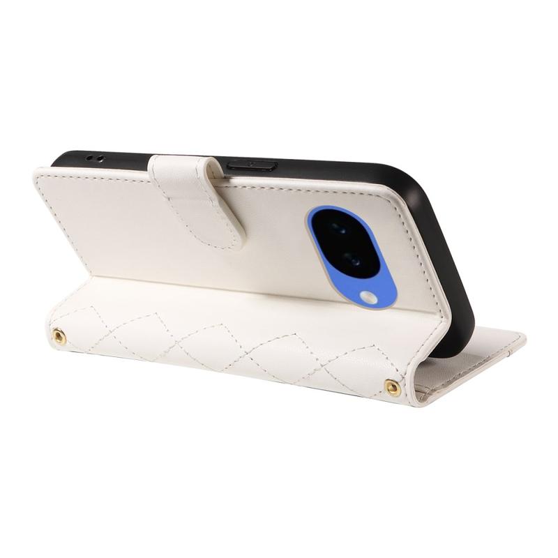 • Luxury Quilted Wallet Case with Shoulder & Wrist Strap for Google Pixel 10a - Rhombus Pattern Protective Cover