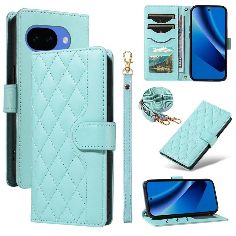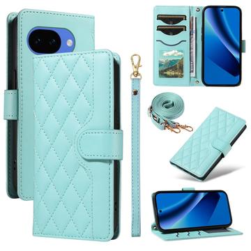 • Luxury Quilted Wallet Case with Shoulder & Wrist Strap for Google Pixel 10a - Rhombus Pattern Protective Cover