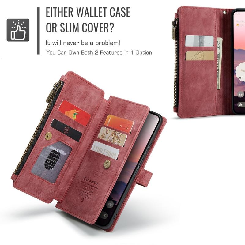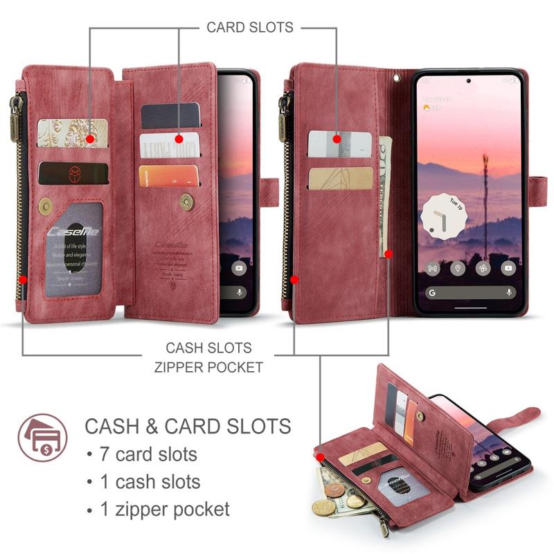 The Caseme C30 multifunctional wallet case for Google Pixel 10a brings exceptional all-around protection and an exclusive, refined design. This elegant case is made of premium polyurethane, reinforced with a shock-resistant TPU inner cover that snuggles your Google Pixel 10a perfectly. Meanwhile, the Caseme C30 wallet case is enhanced with numerous card slots, one large money compartment inside, and one outside zipper pocket, all protected by a secure magnetic closure.