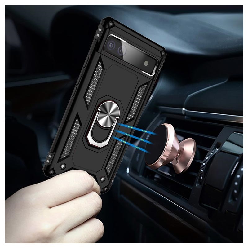 2-in-1 design, protective shell, and kickstand also have a metal plate compatible with a magnetic car or desktop holder. In addition, soft TPU edges will protect your Google Pixel 6a from drops and impacts. Try this modern hybrid case with a metal kickstand and enjoy watching your favorite movies or series without holding your Google Pixel 6a with your hands!