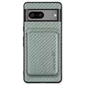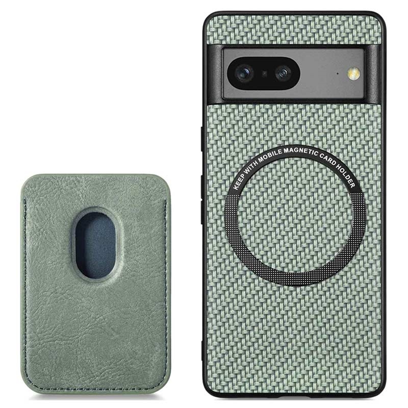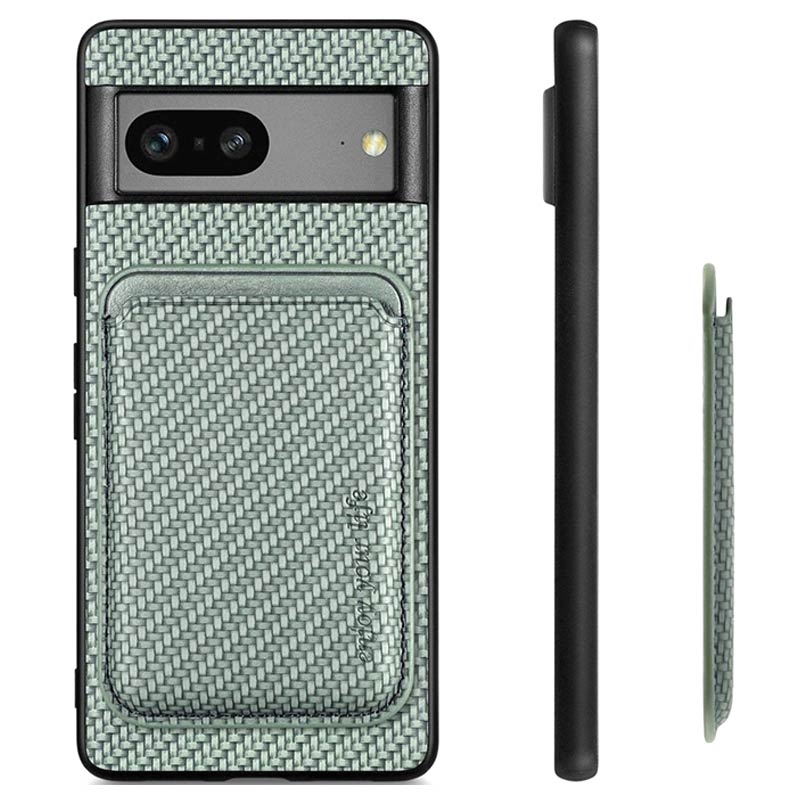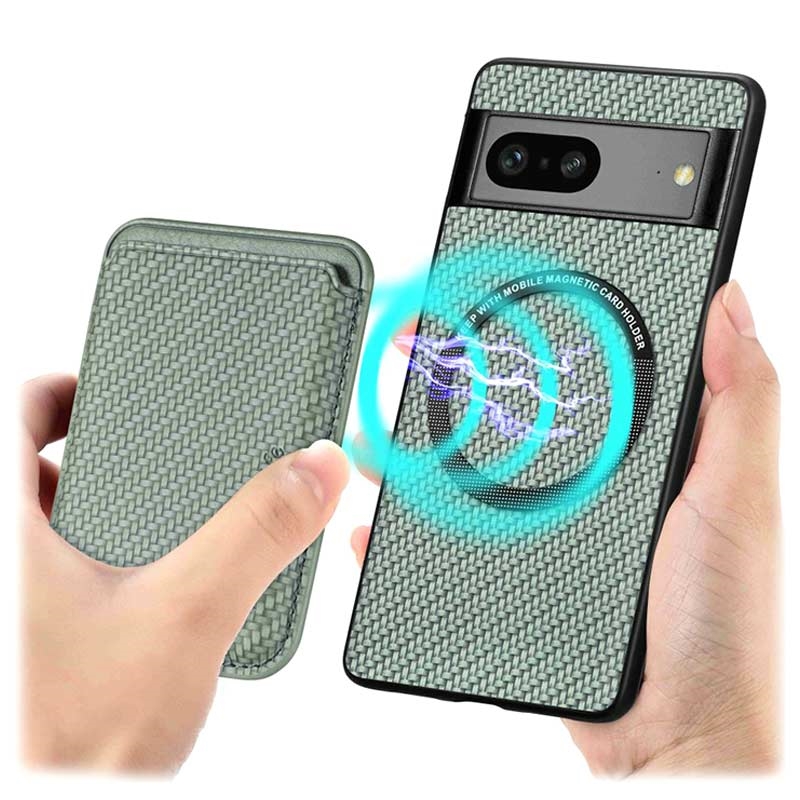 Google Pixel 7 Magnetic Case with Card Holder - Carbon Fiber - Green