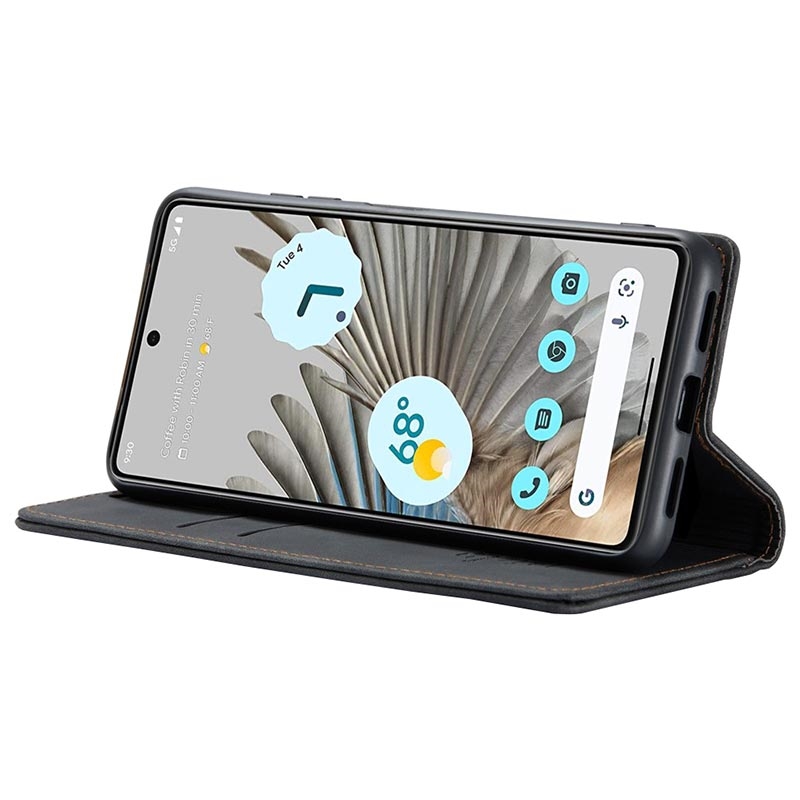 A combination of TPU and polyurethane provides all-around protection for Google Pixel 7 Pro, shielding it from dust, dirt, impacts, scratches, and daily wear. Magnetic attraction keeps the case closed, and clever design enables hands-free usage while watching media content.