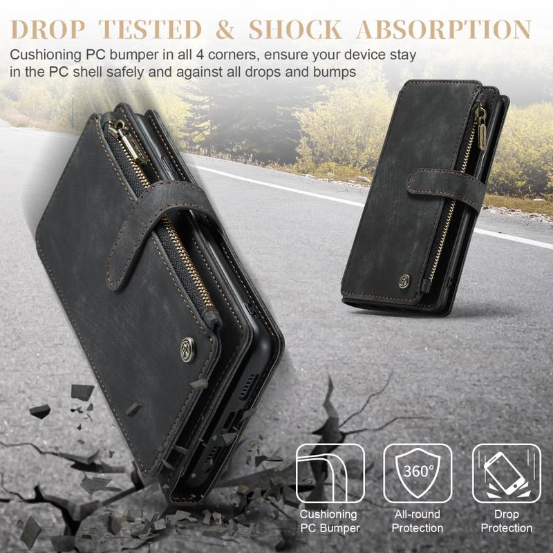 The Caseme C30 multifunctional wallet case for Google Pixel 8 Pro brings exceptional all-around protection and an exclusive, refined design. This elegant case is made of premium polyurethane, reinforced with a shock-resistant TPU inner cover that snuggles your Google Pixel 8 Pro perfectly. Meanwhile, the Caseme C30 wallet case is enhanced with numerous card slots, one large money compartment inside, and one outside zipper pocket, all protected by a secure magnetic closure.
