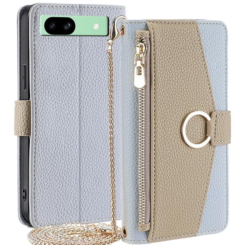 Makeup Mirror Wallet Case with Shoulder Strap for Google Pixel 8a