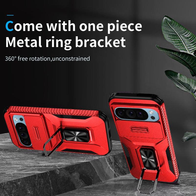 Rotary Ring Hybrid Case with Camera Shield for Google Pixel 9, Pixel 9 Pro