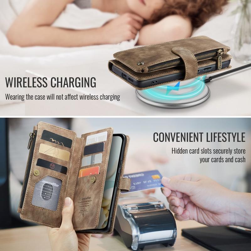 The Caseme C30 multifunctional wallet case for Google Pixel 9a brings exceptional all-around protection and an exclusive, refined design. This elegant case is made of premium polyurethane, reinforced with a shock-resistant TPU inner cover that snuggles your Google Pixel 9a perfectly. Meanwhile, the Caseme C30 wallet case is enhanced with numerous card slots, one large money compartment inside, and one outside zipper pocket, all protected by a secure magnetic closure.