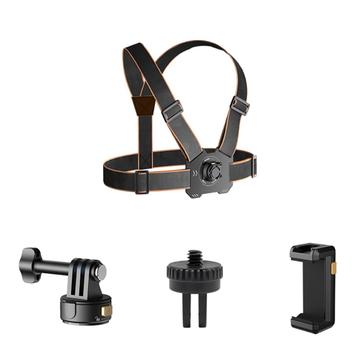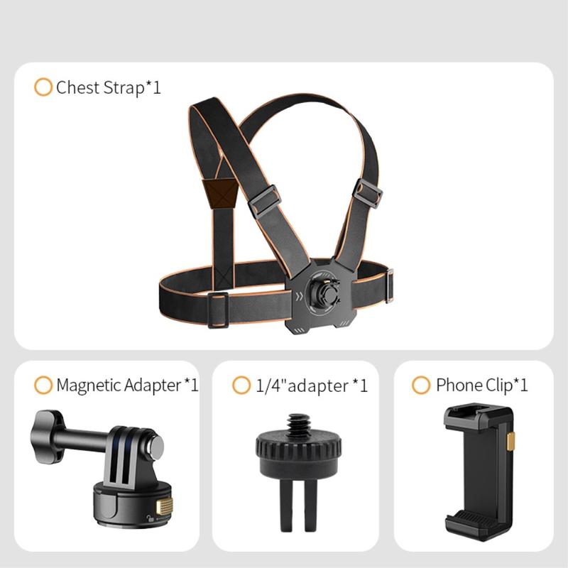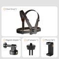 GP-032 Action Camera Chest Strap Set - Magnetic Quick-Release Base, 1/4" Mini Adapter & Phone Clip for POV Shooting