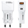 Tactical PTP Travel Adapter 12W - USB-C, USB-A, EU, UK, USA/AUS - White