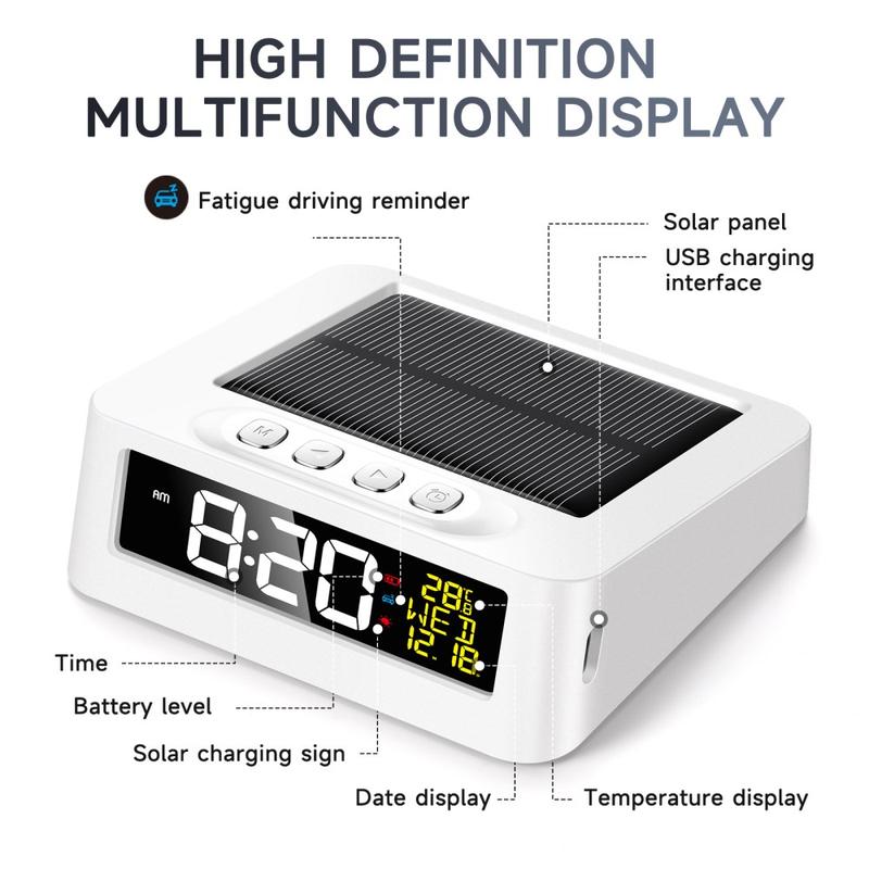 You get a portable clock that keeps running with solar power or USB Type-C charging, making it reliable at home and on the move. The fatigue reminder adds a practical safety benefit for drivers.