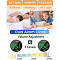 Set two independent alarms, each with its own on/off switch and 3 weekday modes: Monday–Sunday, Monday–Friday, Saturday–Sunday. Ideal for managing different routines throughout the week.