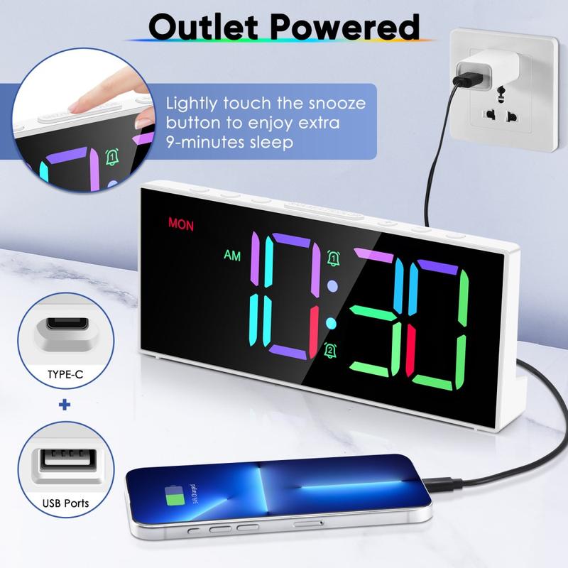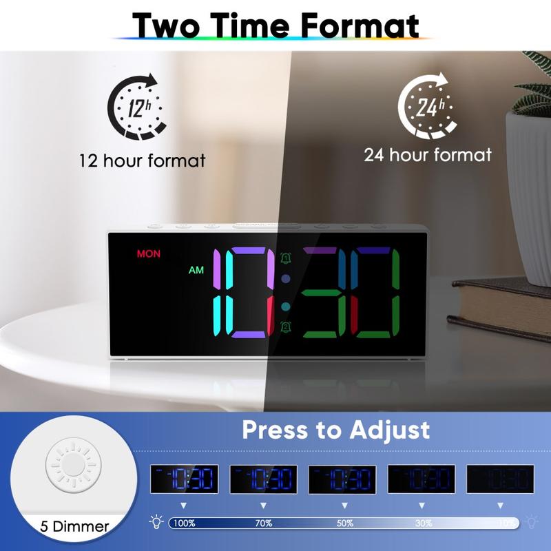 GS-G11 RGB Digital Alarm Clock with LED Display, Adjustable Brightness & Volume
