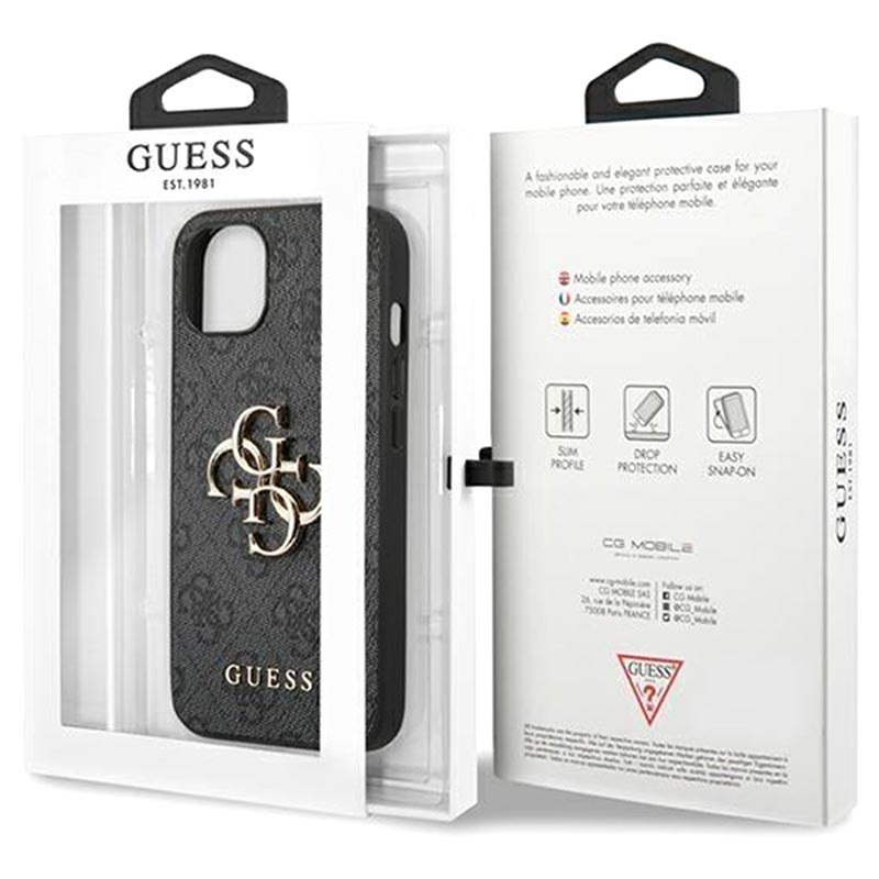 - Fashion and protection provided by the Guess 4G Big Metal Logo hybrid case for your iPhone 13