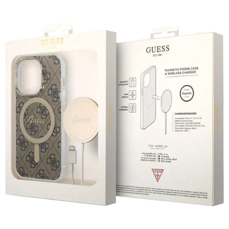 Guess 4G Edition Bundle Pack Hybrid Case & Magnetic Wireless Charger for iPhone 14 Pro Max - 20W