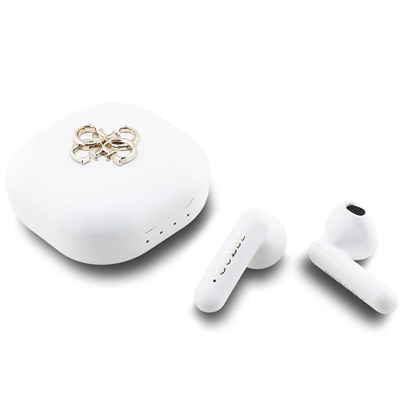 Guess 4G Metal Logo True Wireless Earphones - Bluetooth 5.4 Earphones with Glossy Charging Case & Premium Sound