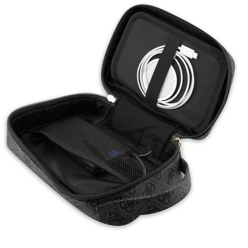 The Guess Travel Universal bag is the ideal travel companion for anyone looking for a stylish and convenient way to carry all their phone, tablet, or laptop accessories. Made with high-quality ECO leather, the bag features a finely textured surface adorned with the iconic Guess logo. Inside, well-designed pockets provide ample space for chargers, power banks, and power cables. The standout feature of this bag is the USB-A output, allowing you to connect a power bank and charge your phone directly from the side of the bag. With a clean design and a sense of style, this bag is perfect for travelers who value functionality and fashion.