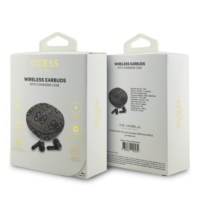 - Stylish Charging Case - Compact and elegant, the case features the Guess 4G Script logo and keeps your earphones charged and protected wherever you go.