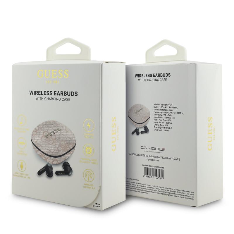 - Stylish Charging Case - Compact and elegant, the case features the Guess 4G Script logo and keeps your earphones charged and protected wherever you go.
