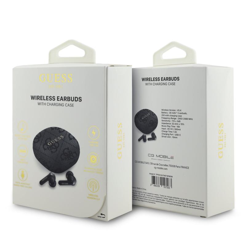 - Stylish Charging Case - Compact and elegant, the case features the Guess 4G Script logo and keeps your earphones charged and protected wherever you go.