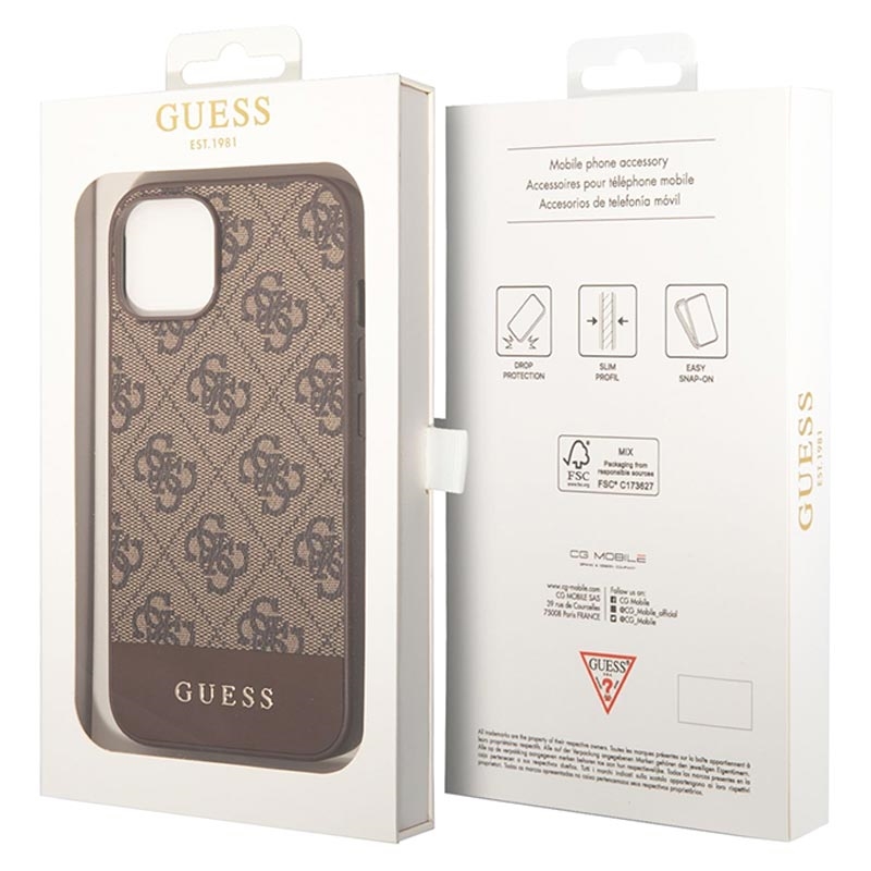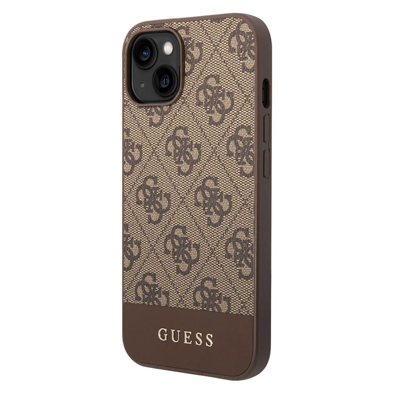 This durable case has a hard polycarbonate back and flexible TPU edges that guarantee the perfect fit, while slightly raised edges keep the display and camera of your iPhone 14 scratch-free. The case features a metal Guess logo and luxurious leatherette texture with a recognizable 4G pattern for the classy look of your iPhone 14.