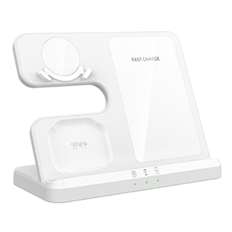 GY-Q10B 3-in-1 Fast Charger Pad Wireless Charging Station for Qi Standard Phone / Samsung Galaxy Watch / Earphone - White