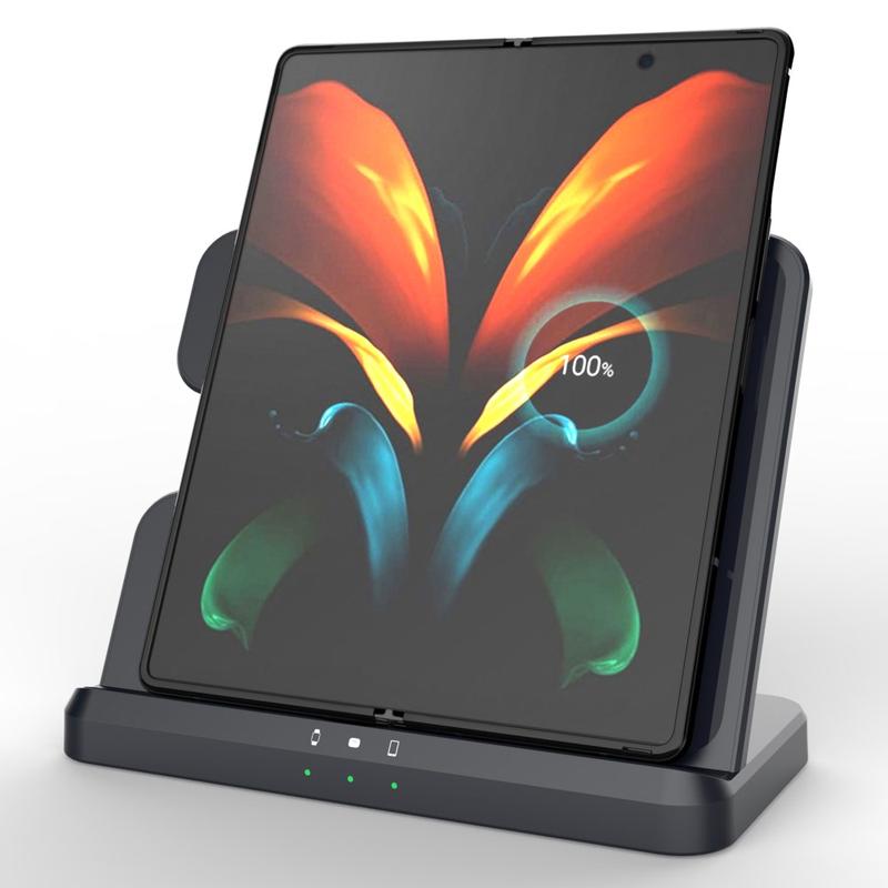Designed with intelligent protection technology, and high reliability. Provides multiple protection functions such as over-temperature protection, over-voltage protection, over-current protection and foreign object detection. This 3-in-1 charging station is equipped with cooling holes on the back of each charger, which can stably and safely charge your Samsung cell phone