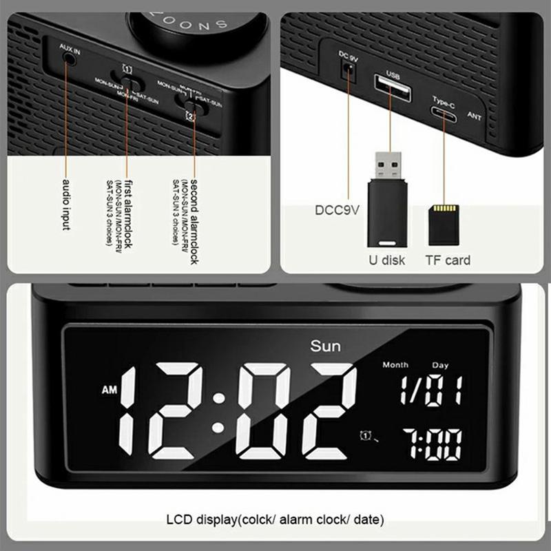 - Customizable Dual Alarms: Set two separate alarms with choices of built-in ringtones, FM radio, or USB music playback. Includes a weekday-only alarm setting for tailored convenience.