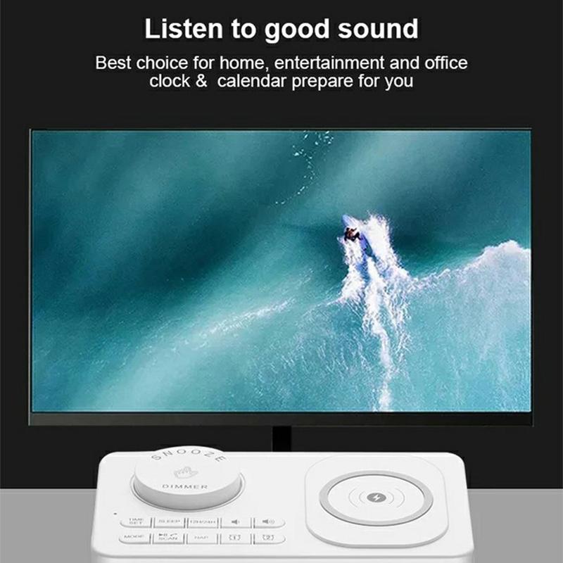 Enhance your daily routine with the H7 Multifunctional Wireless Charging Bluetooth Speaker Clock Radio, a perfect blend of functionality, convenience, and modern design.