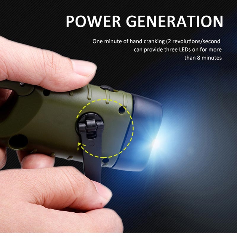 This flashlight is meticulously crafted to excel in both versatility and resilience, seamlessly harnessing the power of solar and hand-crank charging to ensure uninterrupted illumination precisely when it's needed most. Powered by a 40mAh battery capacity, this flashlight provides enduring light to guide you through your adventures. Equipped with three LED lamp heads, it offers two lighting modes: white light and strong light – and a brightness of 13lm.