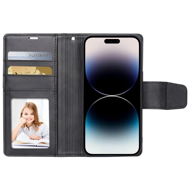 This case features a two-in-one design with a PU leather wallet case and a detachable leather coated TPU back shell, which can be attached together by magnetic snap fastener. High quality materials with exquisite workmanship ensure an elegant look and comfortable hand feeling. Moreover, 2 card slots, 1 photo slot and 1 cash compartment inside allow you to carry around your essential ID, credit cards and cash with your phone without having to take an extra heavy wallet.