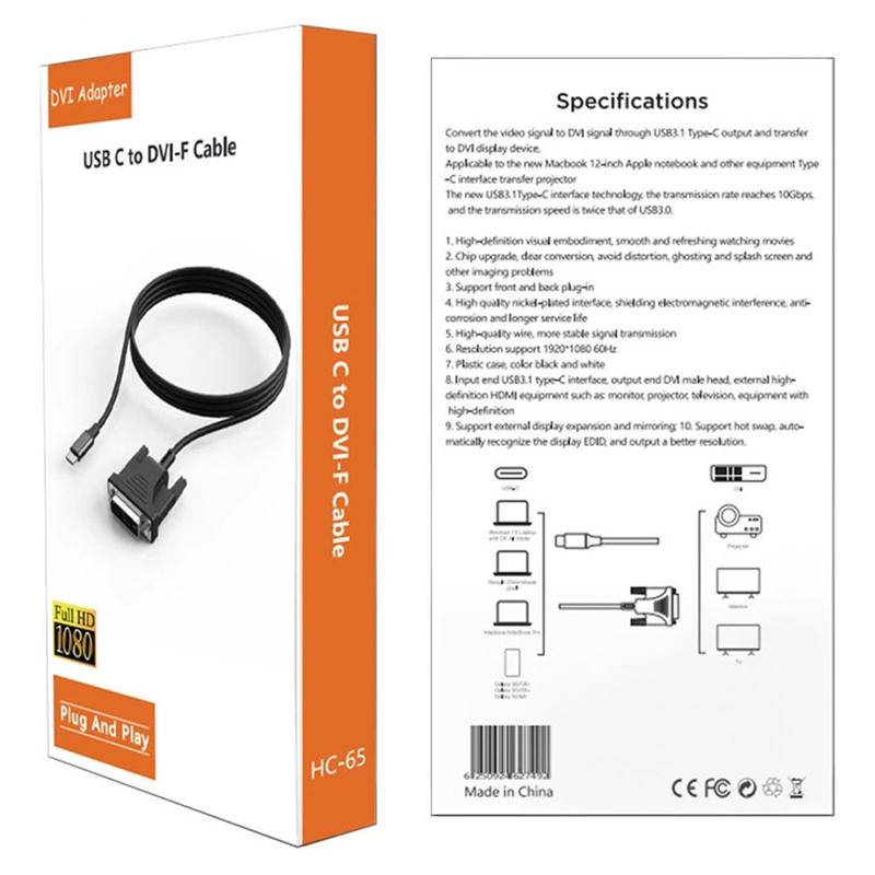 The HC-65 is a practical solution for connecting modern USB-C devices to legacy DVI displays. It combines stable video output, a durable cable design, and broad compatibility, making it ideal for offices, classrooms, and home workstations where DVI monitors or projectors are still widely used.