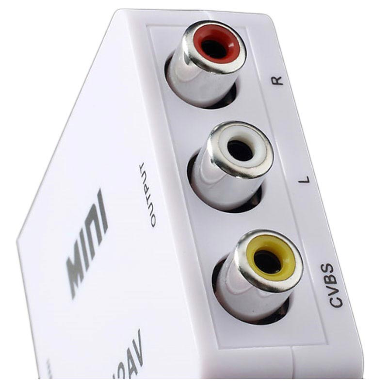 Easily portable and useful, this HDMI to RCA converter allows you to convert your digital HDMI signal to normal CVBS and stereo audio signals. It supports NTSC and PAL TV formats.