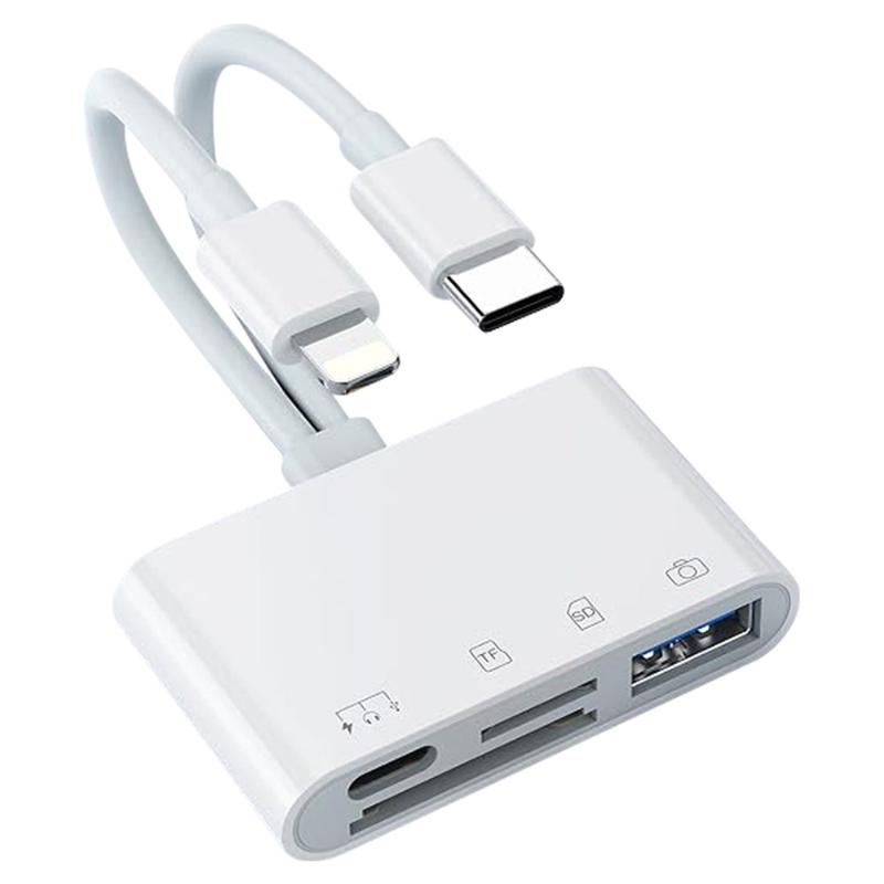 NK-104Pro High-Speed 4-in-2 USB-C & Lightning to SD/TF Card Reader, USB-C, USB OTG Camera Adapter - MFi Certified