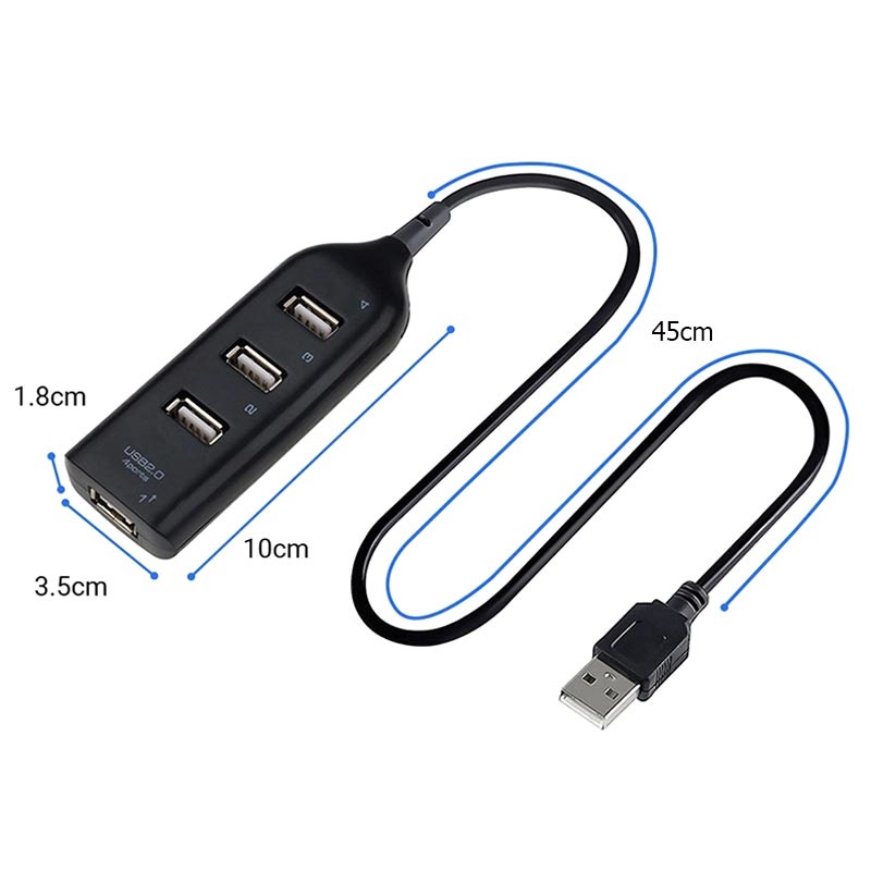High-Speed 4-Port USB Hub 2.0 with 45cm Cable - Charge & Sync, 480Mbps