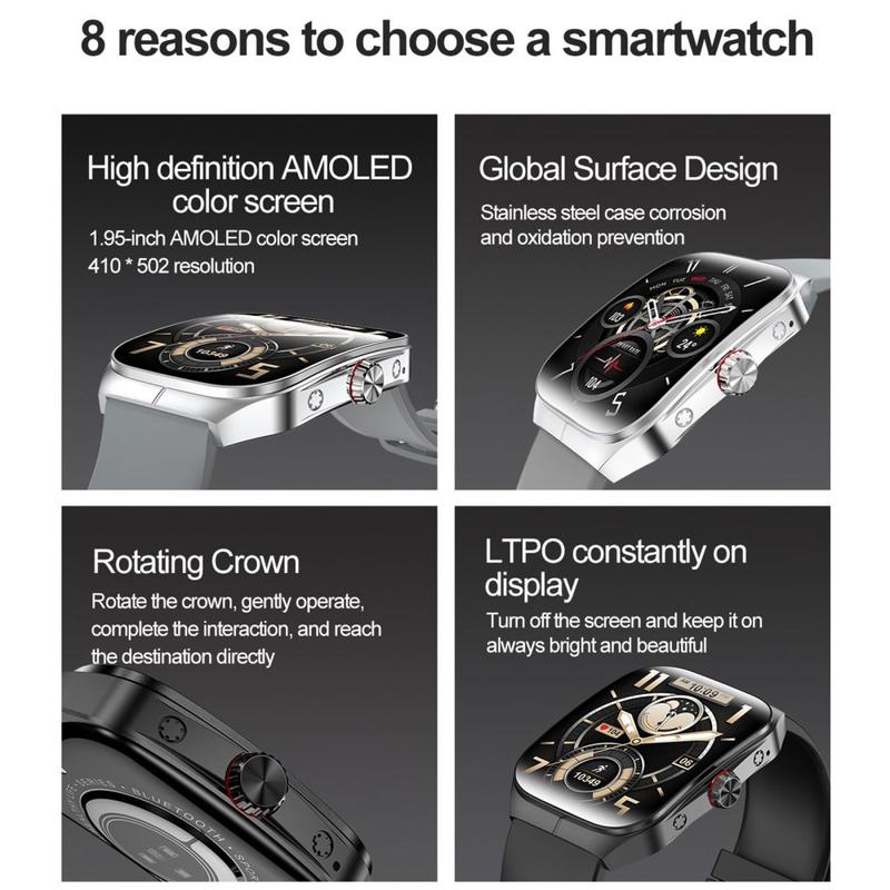 HK80 Smart Watch with AMOLED Curved Screen, Bluetooth Call, Health Monitor & NFC