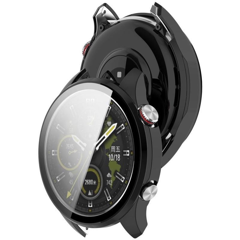 2-in-1 design, the ideal solution to protect your precious Honor Watch 5 Pro against everyday damage. A tempered glass screen protector keeps the watch unscratchable, but it does not affect the touch sensitivity and brightness of the screen. Framed with plastic, it gives your Honor Watch 5 Pro more beauty.