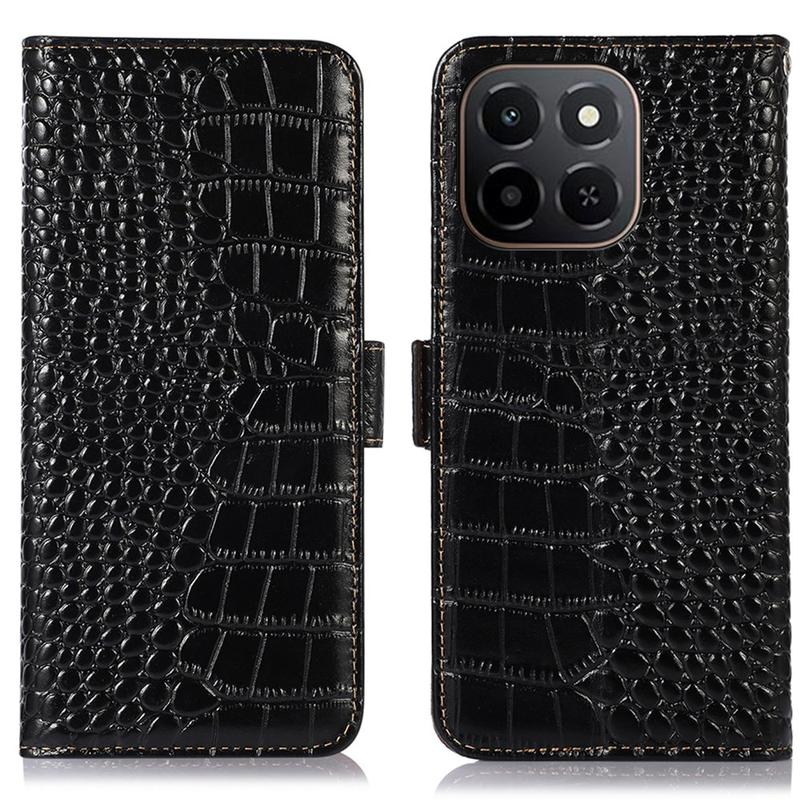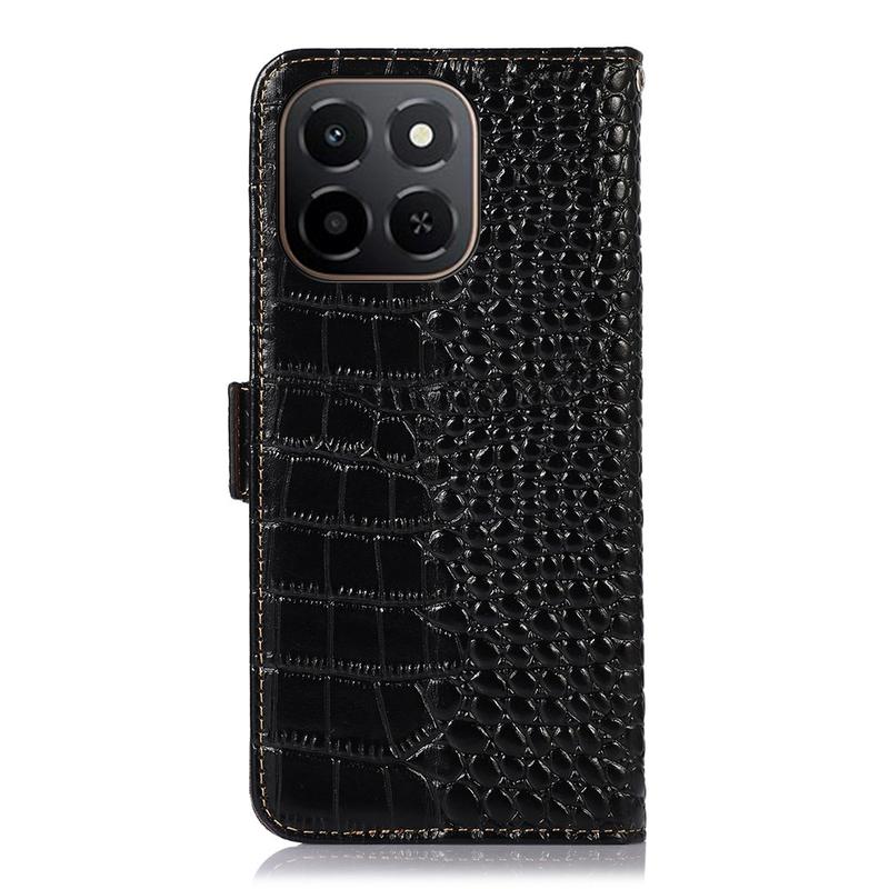 A lightweight and soft wallet case with a unique crocodile texture, the perfect choice to protect your Honor X6c and keep it undamaged. It's made of high-quality genuine leather and inner TPU material, designed with three card slots, an ID slot, and a pocket for cash, ideal for carrying your essentials next to your Honor X6c. Also, RFID technology effectively blocks signals and keep's your data secured.